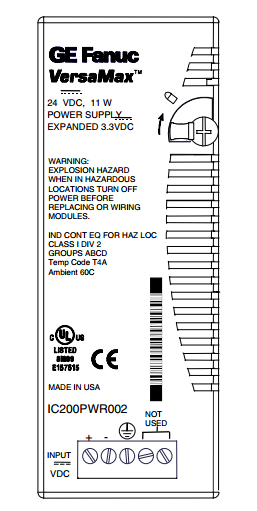 O VersaMax IC200PWR002 é uma unidade de fonte de alimentação expandida (PSU) produzida pela General Electric Fanuc. O trabalho deste módulo é fornecer energia para os seguintes tipos de dispositivos de backplane: CPUs, NIUs, módulos de E / S e muito mais. Quando conectado à unidade central de processamento ou unidade de interface de rede, este módulo de fonte de alimentação atua como energia principal, mas também pode ser montado em um portador de reforço e funcionar como energia suplementar.