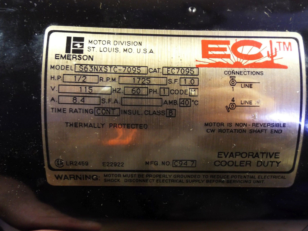 EC7095 S63NXSTC-7095 EMERSON 115V AC VAPORATIVO MOTOR COOLER